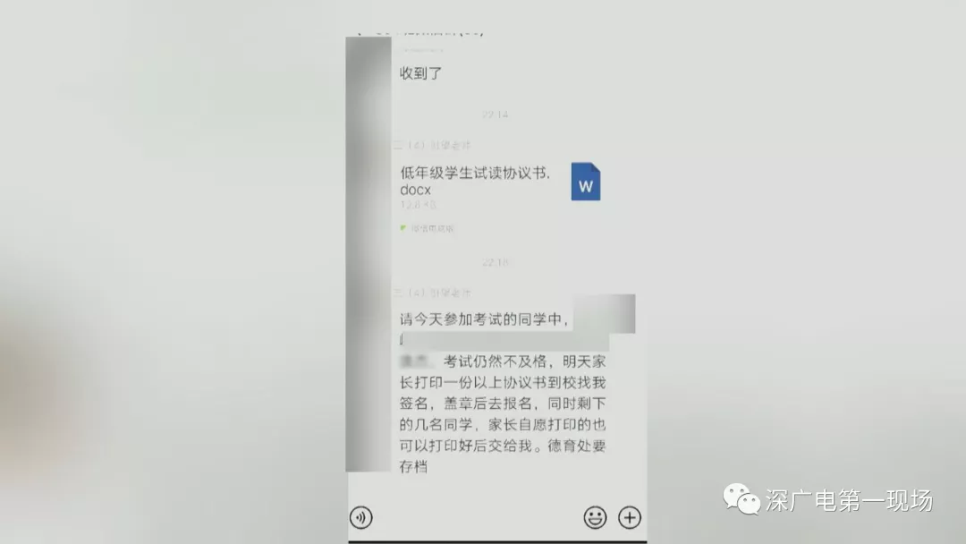 家長反饋不一有家長沒接到通知在學校財務(wù)室門口,也有很多家長在此排隊準備辦理報到手續(xù)。對于《試讀協(xié)議》的情況,有部分班級的家長表示不知情,沒有收到通知,但也有家長已經(jīng)簽過協(xié)議,并且讓德育處有關(guān)領(lǐng)導簽過字,這才來到報到的。