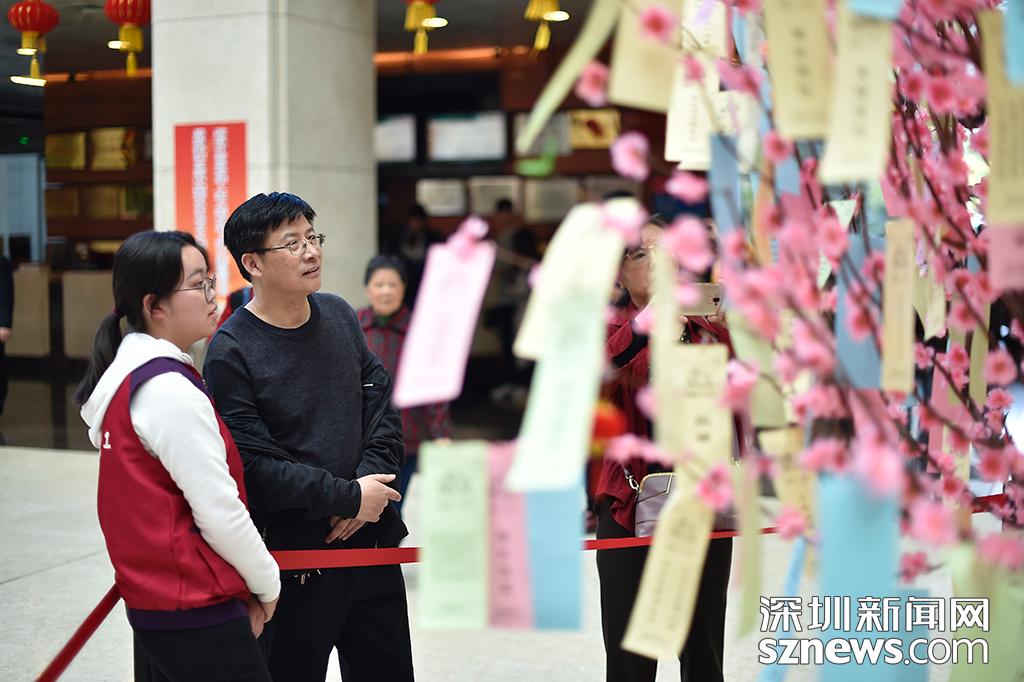 現(xiàn)場的燈謎樹吸引不少市民駐足觀看猜燈謎