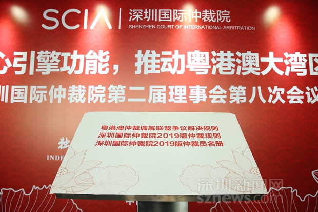 2月21日的發(fā)布會(huì)上,深圳市副市長黃敏為新聘任的兩名深圳國際仲裁院理事袁國強(qiáng)(香港前律政司司長)、劉春華(中聯(lián)辦法律部部長)頒發(fā)了聘書。