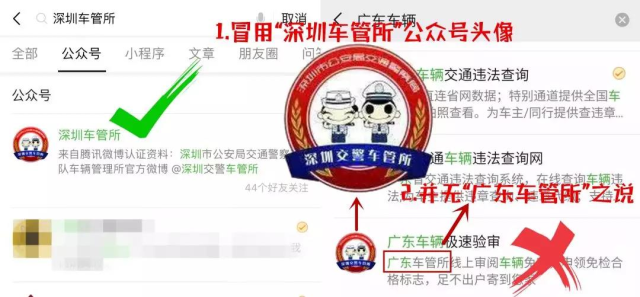 不法分子建立的公眾號(hào)冒用“深圳車(chē)管所”的官方頭像,并在簡(jiǎn)介中使用了子虛烏有的“廣東車(chē)管所”。