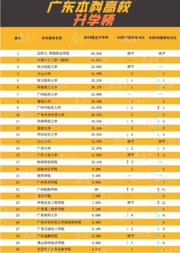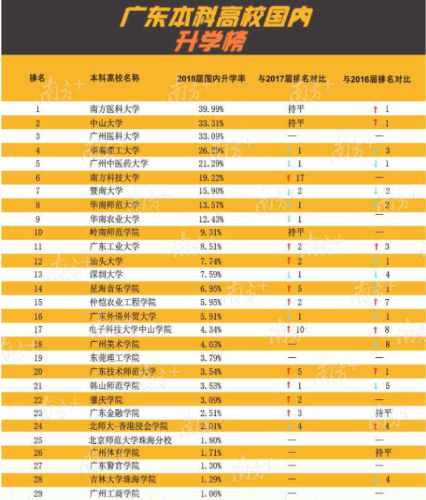 在發(fā)布“薪酬榜”后(點(diǎn)擊查看“薪酬榜”),今天南方教育智庫(kù)繼續(xù)獨(dú)家推出廣東高?!吧龑W(xué)榜”,梳理全省123所高校發(fā)布的《2018年畢業(yè)生就業(yè)質(zhì)量年度報(bào)告》的關(guān)鍵數(shù)據(jù),聚焦畢業(yè)生的深造路徑和升學(xué)比例。其中南方醫(yī)科大學(xué)、中山大學(xué)、廣州醫(yī)科大學(xué)本科畢業(yè)生國(guó)內(nèi)升學(xué)率位列前3名,均超過(guò)33%。