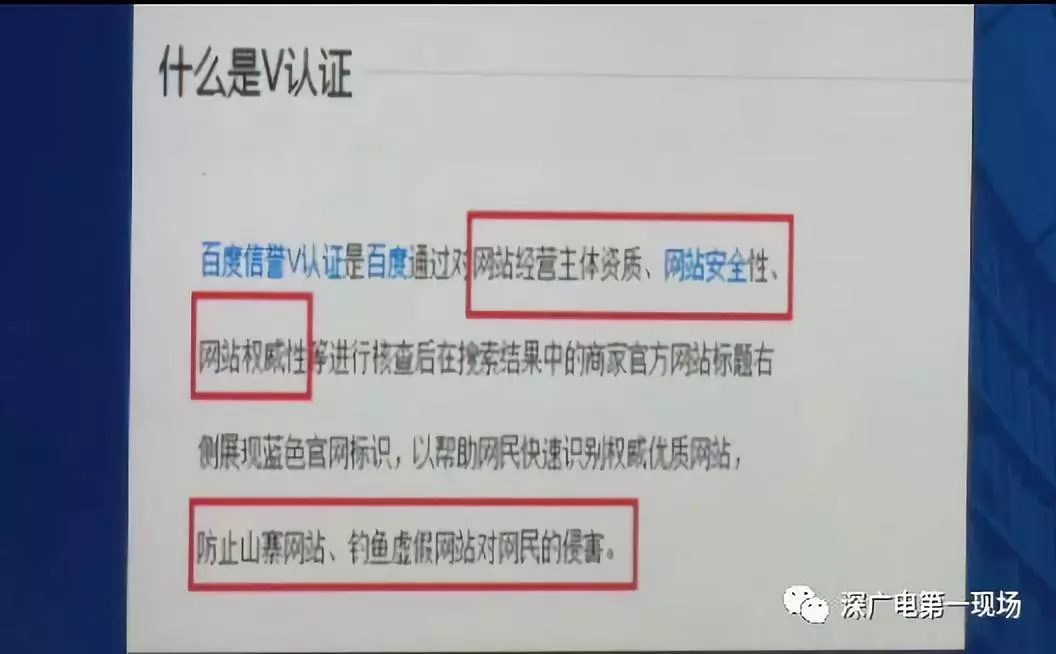 百度信譽(yù)V認(rèn)證,是百度通過(guò)對(duì)網(wǎng)站經(jīng)營(yíng)主體資質(zhì)、網(wǎng)站安全性、網(wǎng)站權(quán)威性等核查后,在搜索結(jié)果中的商家官方網(wǎng)站標(biāo)題右側(cè)展現(xiàn)藍(lán)色官網(wǎng)標(biāo)識(shí),以幫助網(wǎng)民快速識(shí)別權(quán)威優(yōu)質(zhì)網(wǎng)站,防止山寨網(wǎng)站、釣魚(yú)虛假網(wǎng)站對(duì)網(wǎng)民的侵害。