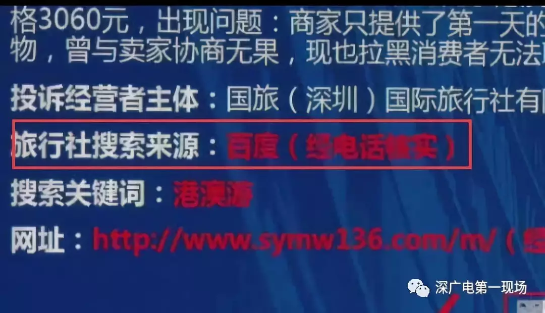深圳市消委會調(diào)查發(fā)現(xiàn),搜素“港澳游”、“國旅”等關(guān)鍵詞時,搜索頁面會出現(xiàn)加V等級認(rèn)證的旅行社廣告信息,但經(jīng)核實(shí),“深圳信用網(wǎng)”商事主體登記信息中并無該企業(yè)。