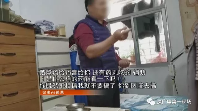 這套房子是三房一廳,有2個(gè)臥室1間治療室和廚房,跟住家一樣,沒有任何跟看病有關(guān)的招牌或宣傳字樣,在客廳里有看似大玻璃瓶泡的藥酒,和很多看似草藥的東西。其中一間房是治療室,有中藥柜和藥罐,還有一張按摩床,墻上貼有穴位圖。聽了記者描述病情后,簡某在記者肩部及腰部簡單按壓,表示這些問題難不倒他,他完全可以治。
