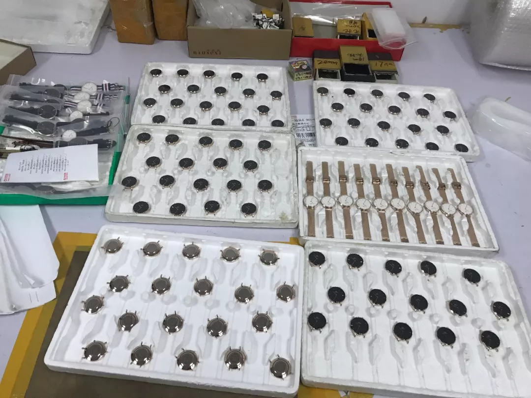 2018年6月21日,深圳市公安局經(jīng)偵支隊聯(lián)合市市場監(jiān)管部門開展打擊假冒DW品牌手表、FOREO等品牌潔面儀收網(wǎng)行動,共出動警力110人,查處窩點13個,刑拘犯罪嫌疑人12人?,F(xiàn)場查扣假冒DW品牌手表13500塊,表帶、表殼、后蓋等配件43000個以及包裝盒、標(biāo)簽12000余個,現(xiàn)場查扣假冒產(chǎn)品價值1200萬元人民幣,總涉案金額3000余萬元人民幣。查扣假冒各品牌美容產(chǎn)品、半成品和商標(biāo)標(biāo)識11798件,查扣假冒產(chǎn)品價值人民幣500萬元。經(jīng)查,上述犯罪團伙在未經(jīng)注冊商標(biāo)所有人許可的情況下,擅自使用注冊的商標(biāo)圖案組裝、翻新假冒DW品牌手表、FOREO品牌潔面儀。經(jīng)商標(biāo)權(quán)利人鑒定,現(xiàn)場查獲的手表和美容儀為假冒其注冊商標(biāo)的產(chǎn)品。