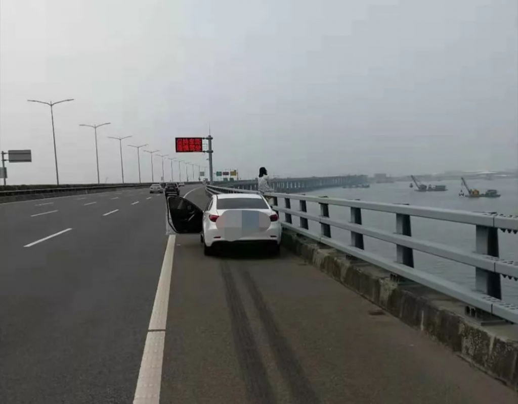 2019年3月4日14時許,深圳交警接到報警稱在沿江高速北行西鄉(xiāng)段,一輛白色小轎車停在應(yīng)急車道,小轎車旁一名女子坐在高速公路橋邊情緒十分不穩(wěn)定。深圳交警快速反應(yīng),立即趕往現(xiàn)場。