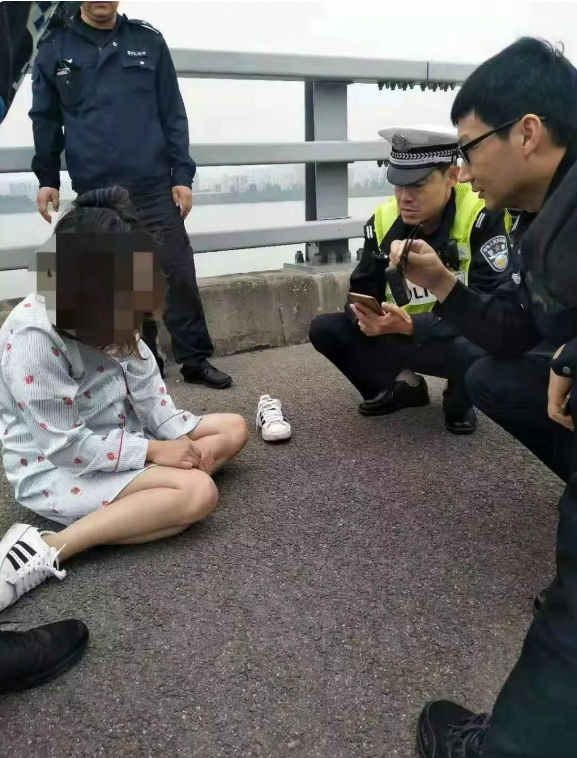 當(dāng)深圳交警趕到現(xiàn)場時,見到該女子情緒異常激動疑有跳橋輕生之舉,橋下便是滔滔江水,現(xiàn)場情況十分危急。