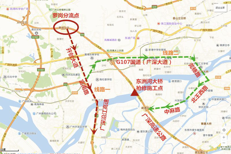 深圳方向蘿崗立交出口繞行線路