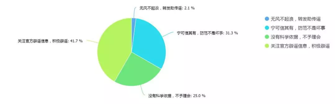“舌尖上的謠言”長期在朋友圈里“屢辟屢傳”,其中一個(gè)重要原因是因?yàn)橄M(fèi)者有著極大的安全焦慮。食品謠言的存在,不僅說明了消費(fèi)者在相關(guān)科學(xué)知識方面的空白,也反映出社會對食品安全的擔(dān)憂。不過經(jīng)過相關(guān)部門和媒體的大力宣傳,已經(jīng)有41.7%的受訪者會主動關(guān)注官方辟謠信息,積極辟謠。