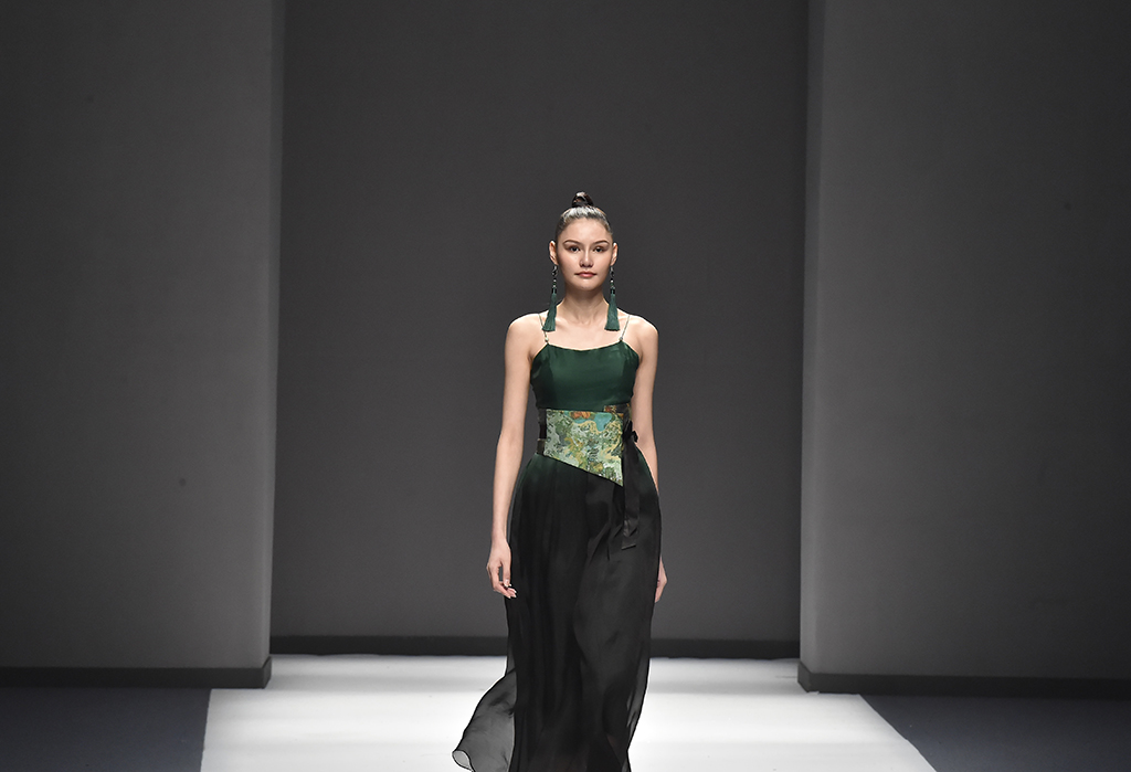 模特正在展示品牌Sunshine見(jiàn)花開(kāi)的服裝服裝凸顯東方特色