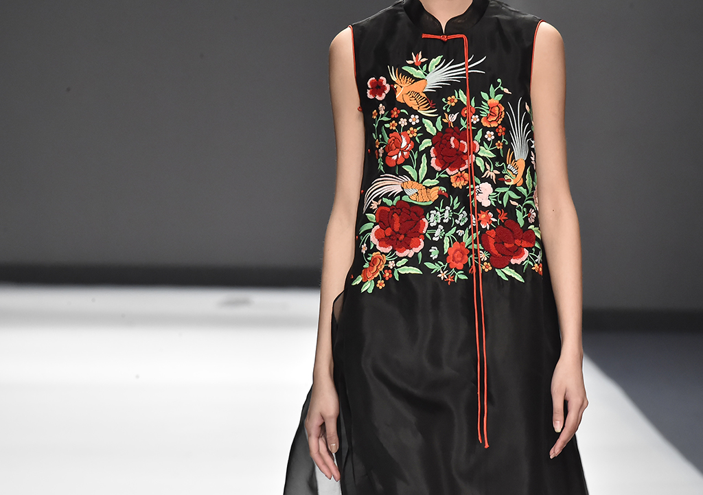 模特正在展示品牌Sunshine見(jiàn)花開(kāi)的服裝花朵的設(shè)計(jì)盡顯東方特色