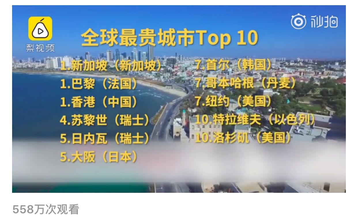 全球城市生活成本最貴的竟然沒有深圳