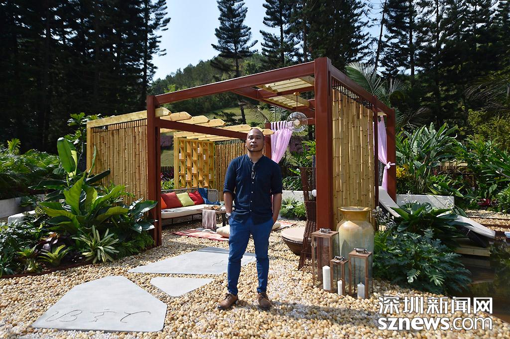 設(shè)計(jì)師戴昆侖與他設(shè)計(jì)的作品現(xiàn)代廚房花園合影