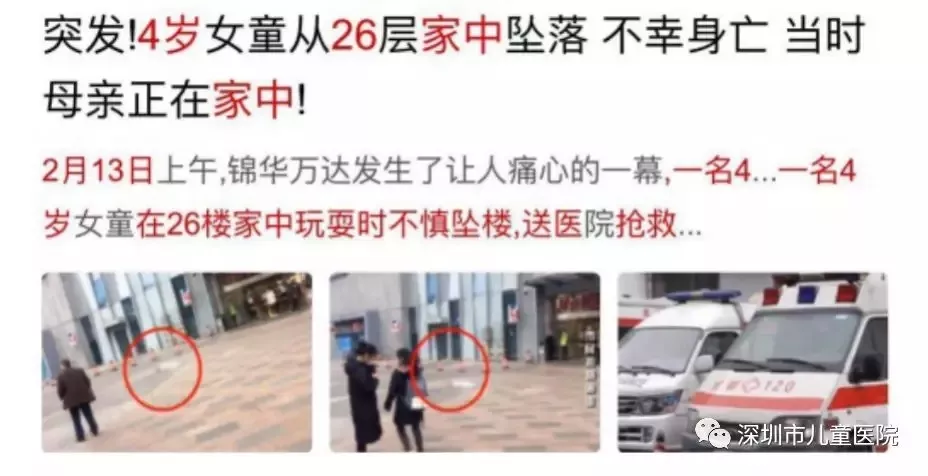 2月13日,四川成都,一名4歲女孩在26樓的家中玩耍時不慎墜樓,送醫(yī)搶救無效死亡。據(jù)了解,看護(hù)孩子的母親當(dāng)時正在上廁所,臥室窗戶沒有安裝防護(hù)欄,孩子玩耍時不慎掉下樓層。