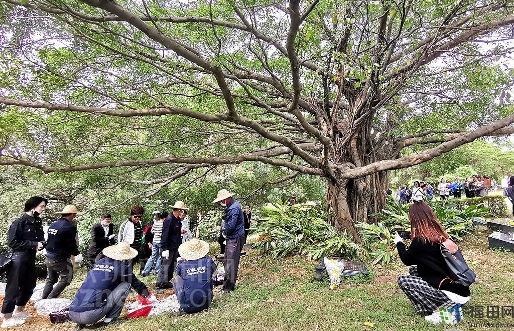 工作人員將骨灰埋葬在樹下。
