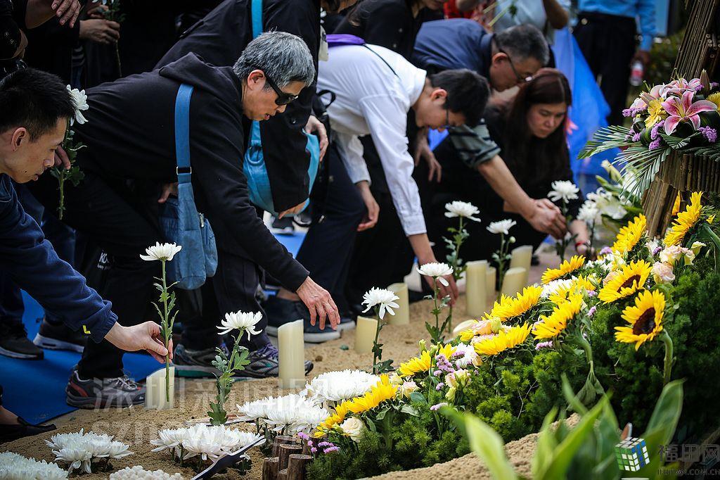 活動參與家屬為逝者獻花。