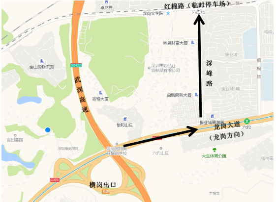 1、高速路線:在武深高速橫崗出口下,向龍崗方向駛出,遇第一個紅路燈左轉,經深峰路進入紅棉路臨時停車場,轉乘接駁大巴。