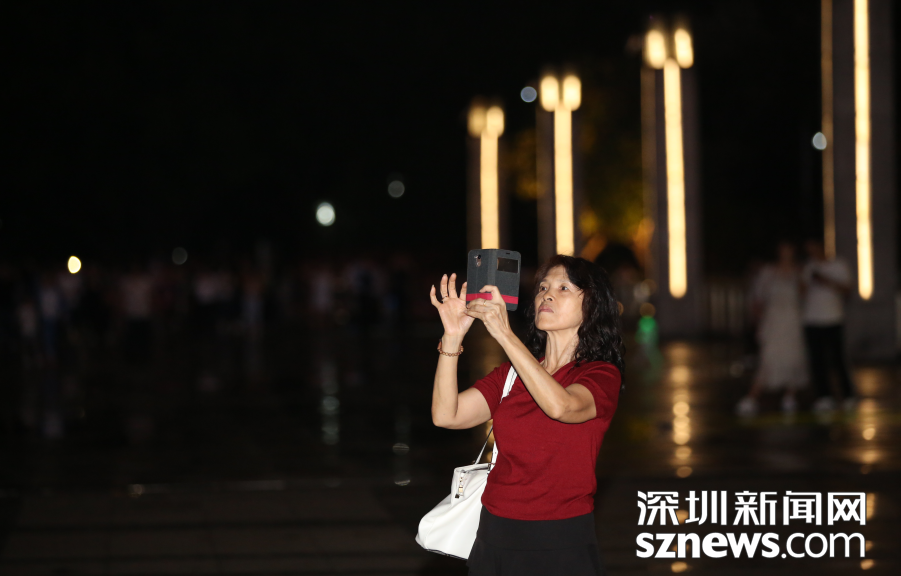市民們紛紛拿出手機(jī)拍攝燈光秀演出。