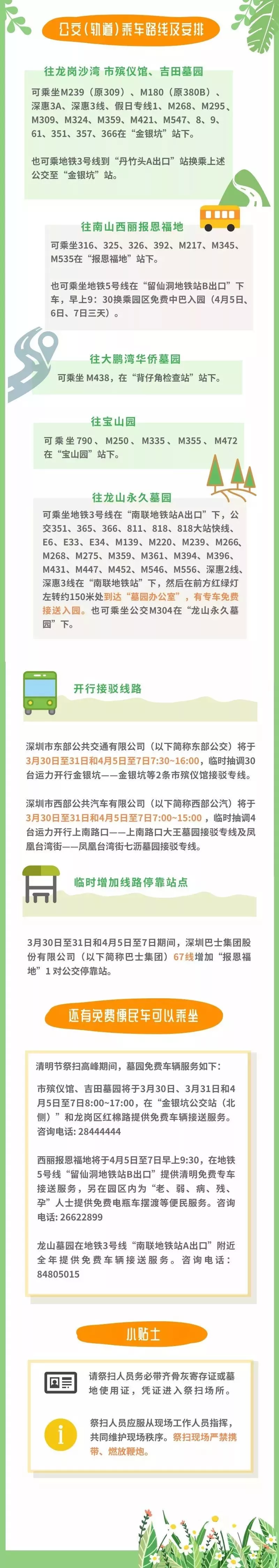 交警部門將視情況對(duì)上述地點(diǎn)進(jìn)行交通管制,為滿足市民朋友出行祭掃需要,除了給大家準(zhǔn)備出行指引外還將開(kāi)行墓園接駁專線、增加??空尽⒃黾舆\(yùn)力請(qǐng)大家文明出行、綠色出行。