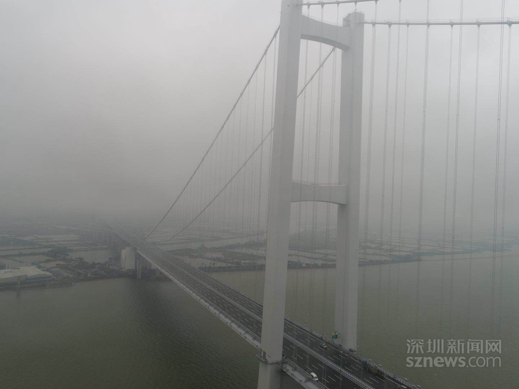 4月1日,微風(fēng)細(xì)雨中的虎門二橋(現(xiàn)名為“南沙大橋”)