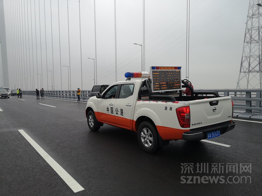 虎門二橋項(xiàng)目營運(yùn)負(fù)責(zé)人高嚴(yán)廣(中)介紹虎門營運(yùn)情況