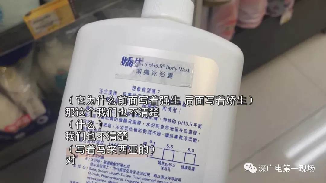 記者又去到毗鄰中英街市監(jiān)所的這家店,它這里同樣外包裝的強(qiáng)生沐浴露,瓶子背面的印刷卻全是英文,和其他店的版本一樣,側(cè)面貼有繁體中文標(biāo)識。