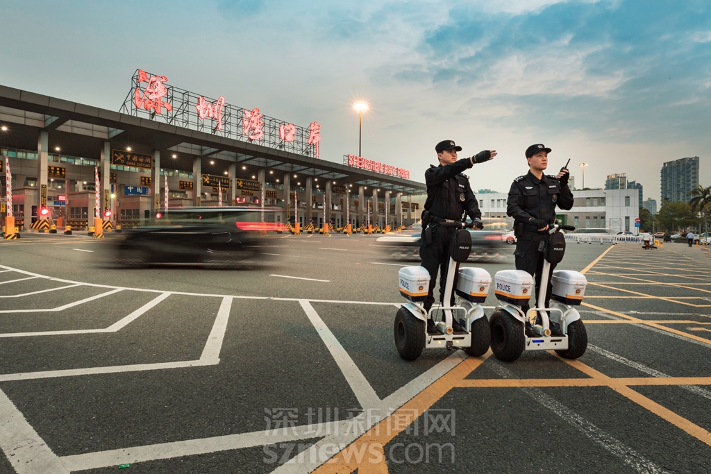 深圳灣口岸邊檢民警正在巡邏執(zhí)勤