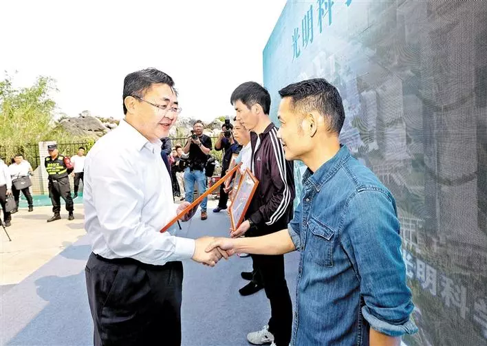在光明科學(xué)城土地整備項(xiàng)目集中清拆現(xiàn)場(chǎng)會(huì)上,光明區(qū)委書記王宏彬、區(qū)長(zhǎng)劉勝為10名被搬遷人代表送上感謝信。感謝信上寫著: