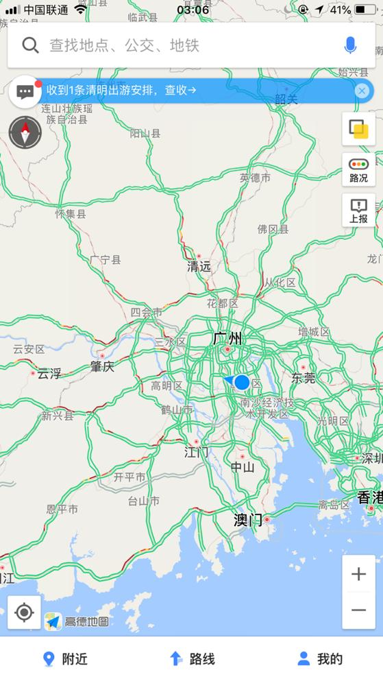 凌晨2點(diǎn)58分,北京周邊,高德地圖上看,一片綠色,讓人覺(jué)得特別舒服。