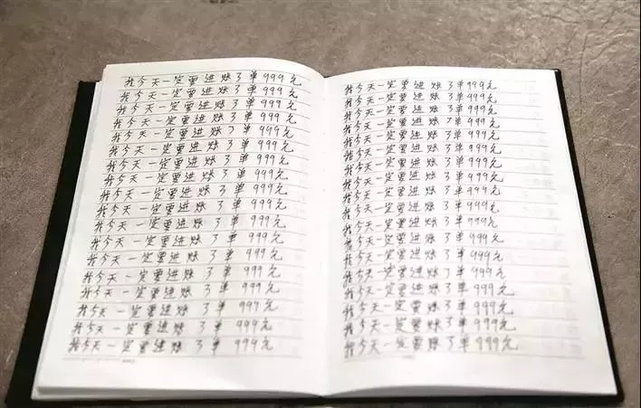 在楊某辦公臺(tái)上有一本筆記本,里面整整24頁寫得密密麻麻,卻反反復(fù)復(fù)只寫了一句話:“我今天一定要進(jìn)賬3單,999元”。
