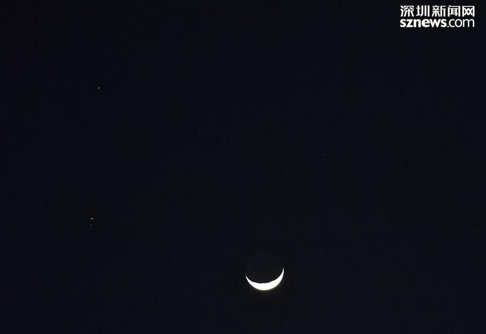 深圳新聞網(wǎng)2019年4月10日訊(記者 楊浩翰)相信不少市民朋友聽過“木星伴月”和“金星伴月”的概念。4月9日是農(nóng)歷初五,深圳的夜空中就出現(xiàn)了“雙星伴月”的天體現(xiàn)象。因為機(jī)緣巧合,昨晚彎彎的月亮從亮恒星畢宿五和火星中間路過,三者相聚在一起,就出現(xiàn)了“月亮笑臉”。