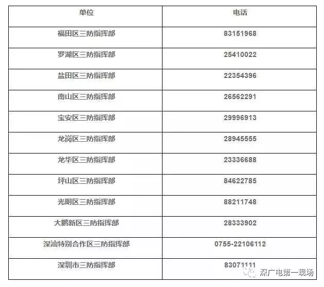 深圳市、區(qū)三防指揮部報(bào)災(zāi)電話