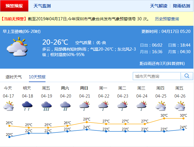 深圳新聞網(wǎng)2019年4月17日訊 連續(xù)6天的持續(xù)性降雨結(jié)束,今日深圳多云可見陽光,但"好景不長",記者從市氣象臺獲悉,18~20日又將迎來一輪暴雨局部大暴雨的降雨過程,21日降雨才會明顯減弱。