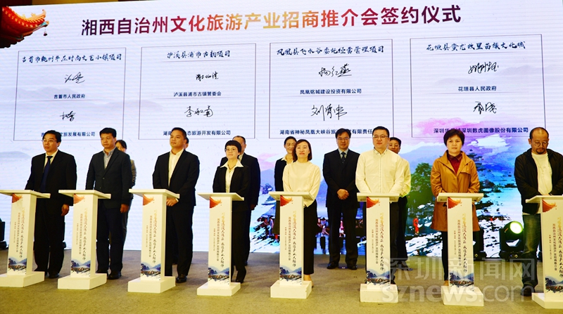 湘西州文化旅游產(chǎn)業(yè)推介會(huì)是“湘西自治州2019年湖南-粵港澳大灣區(qū)投資貿(mào)易洽談周”的重頭戲之一,由湘西自治州人民政府主辦,湘西州文化旅游廣電局承辦。會(huì)上簽約的8個(gè)旅游項(xiàng)目分別是:吉首市乾州牛莊時(shí)尚文藝小鎮(zhèn)項(xiàng)目、瀘溪縣浦市古韻項(xiàng)目、鳳凰縣飛水谷委托經(jīng)營(yíng)管理項(xiàng)目、花垣縣蚩尤故里苗族文化城項(xiàng)目、保靖縣府庫(kù)紅石海景區(qū)項(xiàng)目、永順縣青坪鎮(zhèn)太平村“生態(tài)旅游康養(yǎng)度假區(qū)”項(xiàng)目、龍山縣太平山景區(qū)旅游項(xiàng)目、湘西吉鳳山生龍歡樂(lè)世界項(xiàng)目。國(guó)內(nèi)外眾多知名文化旅游投資商落戶(hù)湘西,標(biāo)志著湘西正成為一方潛力無(wú)限的文化旅游投資熱土和產(chǎn)業(yè)高地。