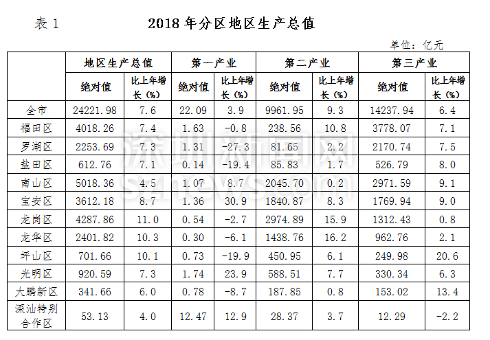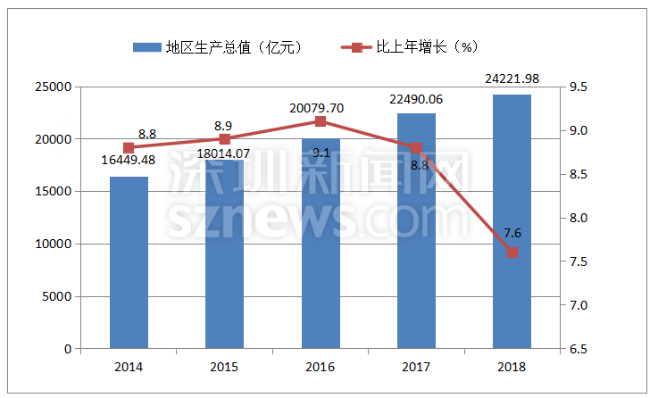 深圳新聞網(wǎng)2019年4月19日訊(記者 劉夢(mèng)婷 通訊員 胡雪濤)4月19日,記者從深圳市統(tǒng)計(jì)局獲悉,深圳市2018國(guó)民經(jīng)濟(jì)與社會(huì)發(fā)展統(tǒng)計(jì)公報(bào)出爐:全市實(shí)現(xiàn)地區(qū)生產(chǎn)總值24221.98億元,比上年增長(zhǎng)7.6%,常住人口達(dá)1302.66萬(wàn)人。人均可支配收入57543.60元,居民人均消費(fèi)支出40535.02元。總體來(lái)看,2018年深圳經(jīng)濟(jì)運(yùn)行穩(wěn)健,主要經(jīng)濟(jì)指標(biāo)表現(xiàn)良好,高質(zhì)量發(fā)展扎實(shí)推進(jìn)。