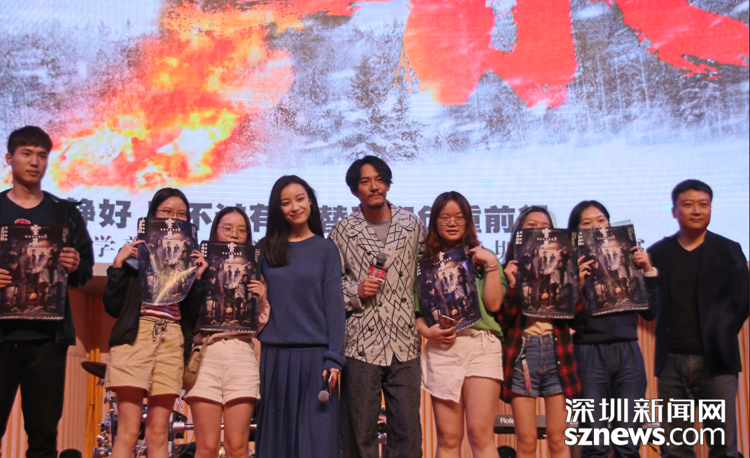 張震倪妮與深圳大學學生合影