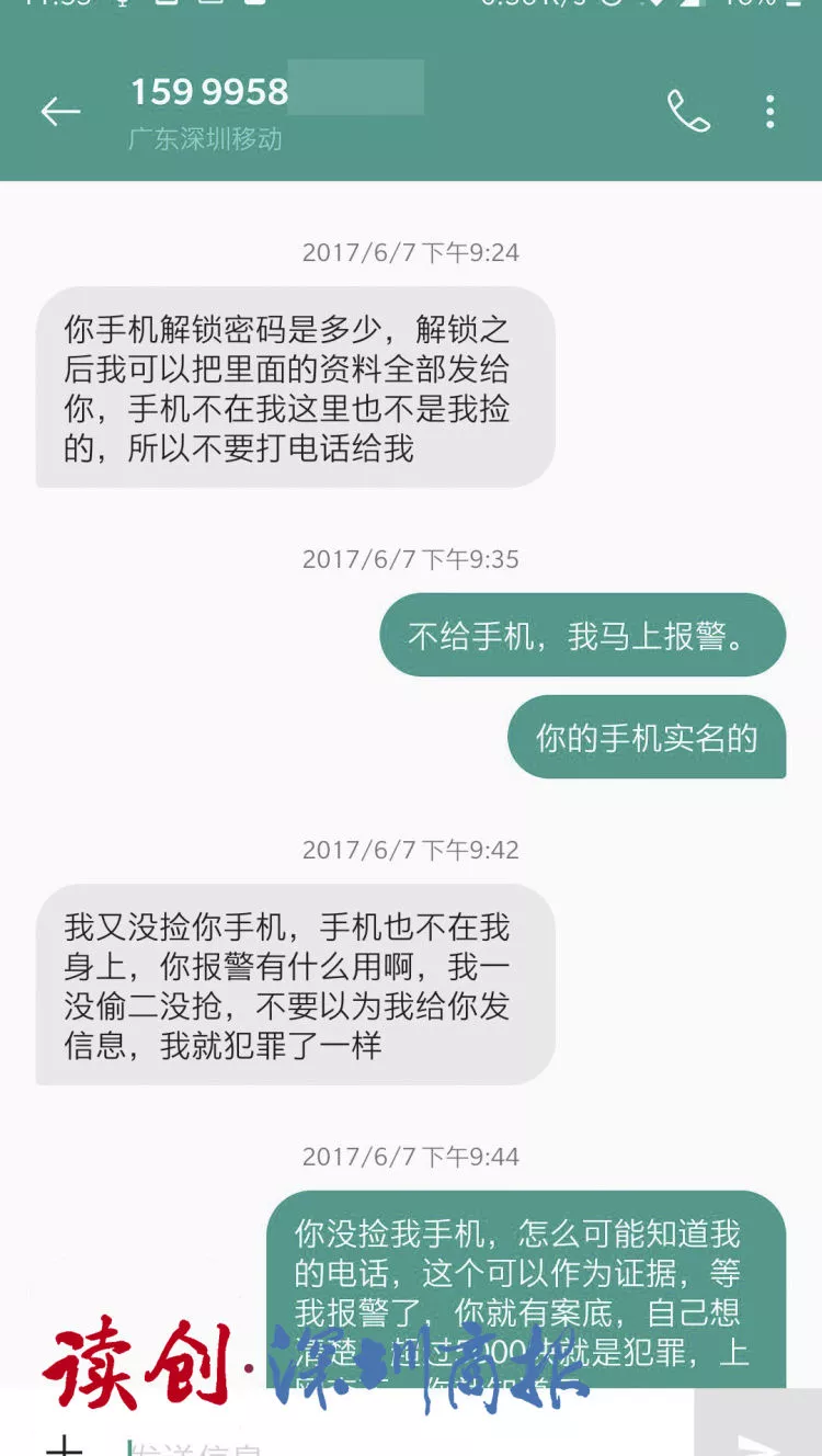 “你手機(jī)密碼多少,我把里面的資料全部發(fā)給你,但手機(jī)不是我撿的,不要打電話給我?!?/p>