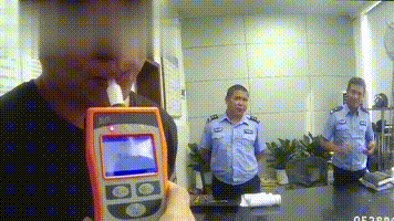 在交警的多番警告下,陳某這才開始老實起來,配合酒精檢測。