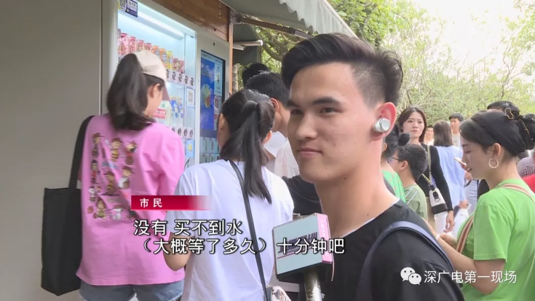 五一假期第一天,就有不少的市民朋友報(bào)料說(shuō),深圳灣公園人流爆棚,到處都是人擠人。下午5點(diǎn),記者來(lái)到園區(qū)內(nèi)的自動(dòng)售賣(mài)機(jī)旁,發(fā)現(xiàn)已經(jīng)擠滿了人,不少人正在排隊(duì)買(mǎi)水。