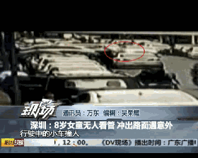 從監(jiān)控視頻可見(jiàn),一輛白色小車正常行駛通過(guò),這時(shí),一名扎著馬尾辮的女童突然從路旁沖了出來(lái)。
