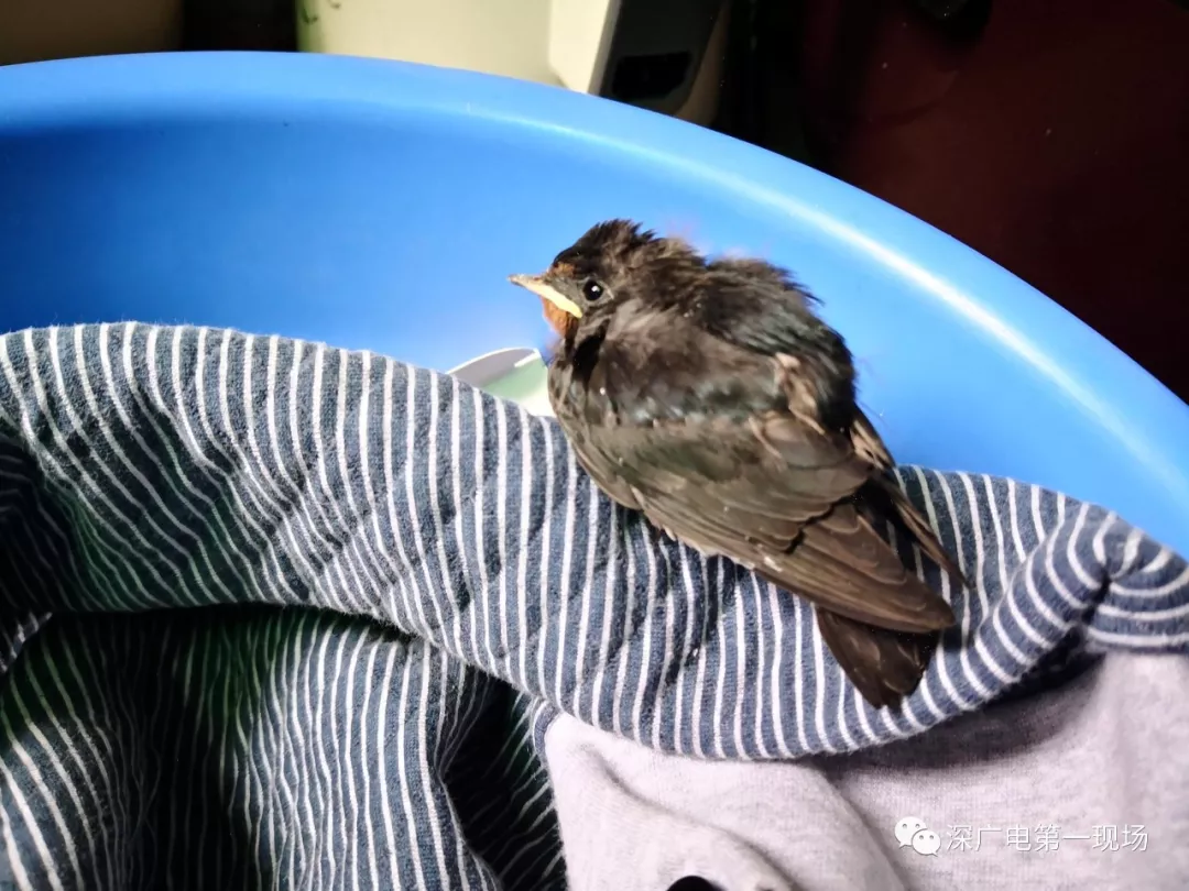 ↑她給這只幸存的小燕子搭了個窩,但小鳥一直在瑟瑟發(fā)抖,什么東西都不吃。