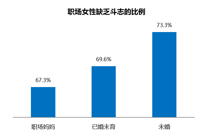 盡管來自生活和事業(yè)的雙重壓力較大,但是職場媽媽的職場斗志依然高昂。調查顯示,整體來看職場女性不加班的比例不足三成,職場媽媽群體的加班強度略僅低于其他女性職場人,有31.1%的職場媽媽不用加班。雖然職場的外部競爭環(huán)境壓力大,但職場媽媽奮斗拼搏的精神氣很高。調研顯示,職場媽媽"經?;蚺紶柍霈F(xiàn)缺乏工作斗志"的比例最低,為67.3%;已婚未育排在次位;未婚女性人群中缺少斗志的占比高達73.3%。