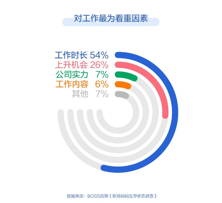 根據(jù) BOSS直聘發(fā)布的《2019職場媽媽生存現(xiàn)狀調查報告》,有65%的受訪職場媽媽認為自己有潛在的抑郁傾向,逾八成媽媽對孩子感到愧疚,工作時長是職場媽媽在工作中最為看重的要素。一面是嗷嗷待哺的孩子,一面是苦心經營的工作,事業(yè)與家庭的平衡或成職場媽媽焦慮的根源。