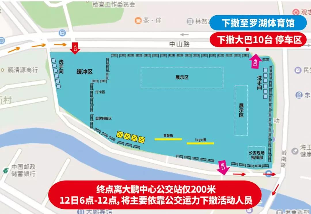 深圳大運中心(起點:0KM)→龍飛大道→龍翔大道→愛南路→龍崗河綠道→沙荷路→大望文化高地→望桐路→梧桐山村→梧桐驛站(補給點:28.4KM)→譚仙廟→小三洲(二簽及強制下撤點:39.8KM)→云海谷體育公園(補給點及強制下撤點:45.7KM)→光背村→上坪水庫(53.6KM)→小梅沙(強制下撤點:57.3KM)→紅花嶺→坪山體育中心(三簽:56.9KM)→比亞迪路→金業(yè)大道→葵涌文化廣場(補給點:69KM)→官湖綠道→大鵬文化廣場(終點:85KM)