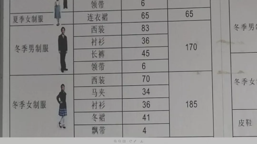 而中學(xué)學(xué)生男女冬季制服價(jià)格為170和185元。