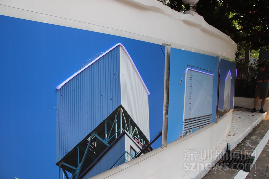 木村華子作品《[ ]廣告牌》給照片里的建筑加上了讓人心情平靜的藍(lán)色霓虹燈