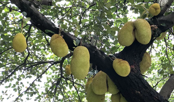 ⑨日前,有居民反映稱,蛇口公園北路靠近蛇口體育中心一側幾百米的人行道上種植60余棵菠蘿蜜樹,樹上掛了不少果實,蔚為壯觀,儼然成為路上一景。不過也擔心碩大的菠蘿蜜會掉落砸傷路人。