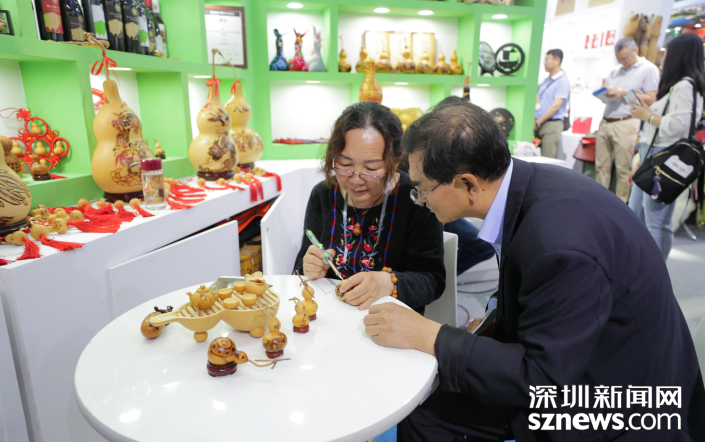 展會(huì)上的寧夏非遺文創(chuàng)產(chǎn)品也深受游客青睞。寧夏民間器樂傳承人馬文祥手持傳統(tǒng)樂器“咪咪”,吹奏一曲寧夏“花兒”,引得游客駐足聆聽。在葫蘆刻繪展區(qū),傳承人陶瑞珍正在向游客介紹葫蘆畫的繪制過程,據(jù)她介紹,這是自己第四次參加“文博會(huì)”,與往屆相比,本次參展的葫蘆畫產(chǎn)品種類更加豐富。