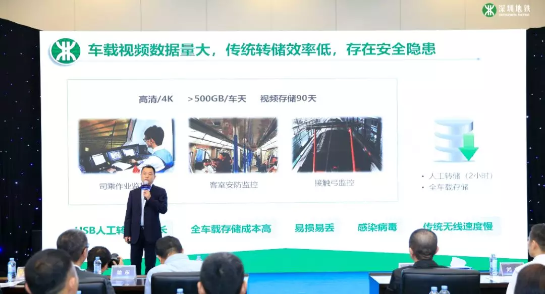 “為了滿足乘客出行的安全、便捷需求,業(yè)界地鐵的每一節(jié)車廂都搭載著多個(gè)攝像頭,少則2個(gè)多至8個(gè),從最初的模擬到標(biāo)清,又從高清升級(jí)到4K”,深圳地鐵相關(guān)專業(yè)負(fù)責(zé)人說,技術(shù)的發(fā)展帶來了新的挑戰(zhàn),“車載數(shù)據(jù)都需要下傳到地面,而其中的視頻錄像所占容量最大。