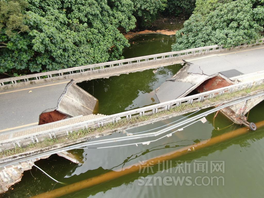 現(xiàn)場坍塌橋面航拍情況